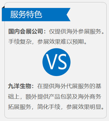 杭州九洋生物科技有限公司提供國際市場與國內(nèi)市場的營銷推廣服務等全鏈條、一站式產(chǎn)業(yè)孵化與創(chuàng)新服務。本著“帶醫(yī)療企業(yè)走出去”的原則,努力通過為國內(nèi)醫(yī)療企業(yè)提供“出!碑a(chǎn)品包裝、海外商務合作,拓展企業(yè)的國際市場,提高企業(yè)國際市場份額。并且致力于將全球?qū)I(yè)的和具有影響力的展會介紹給國內(nèi)的貿(mào)易商和制造商,并提供值得信賴的代展服務。