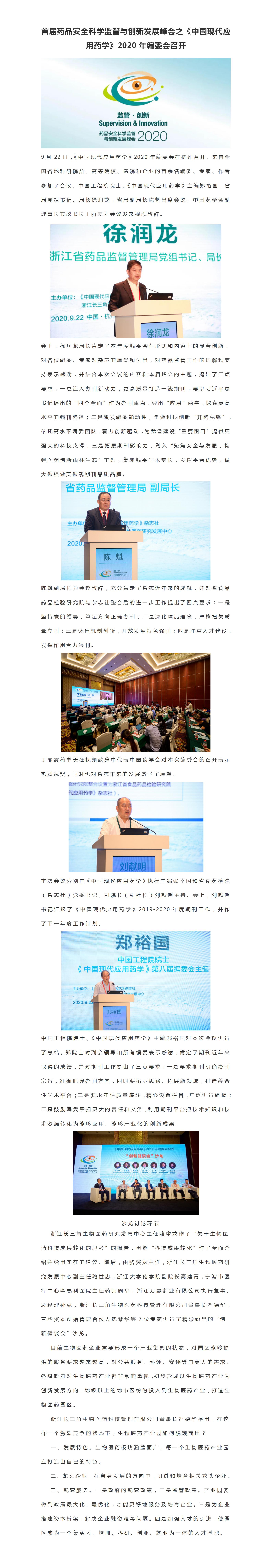 首屆藥品安全科學(xué)監(jiān)管與創(chuàng)新發(fā)展峰會之《中國現(xiàn)代應(yīng)用藥學(xué)》2020年編委會召開