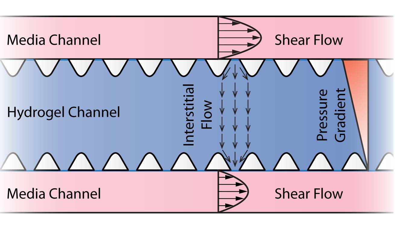 水凝膠貫穿在整個AIM芯片的間隙中,流體及化學物濃度梯度都可以被控制和調(diào)節(jié)。